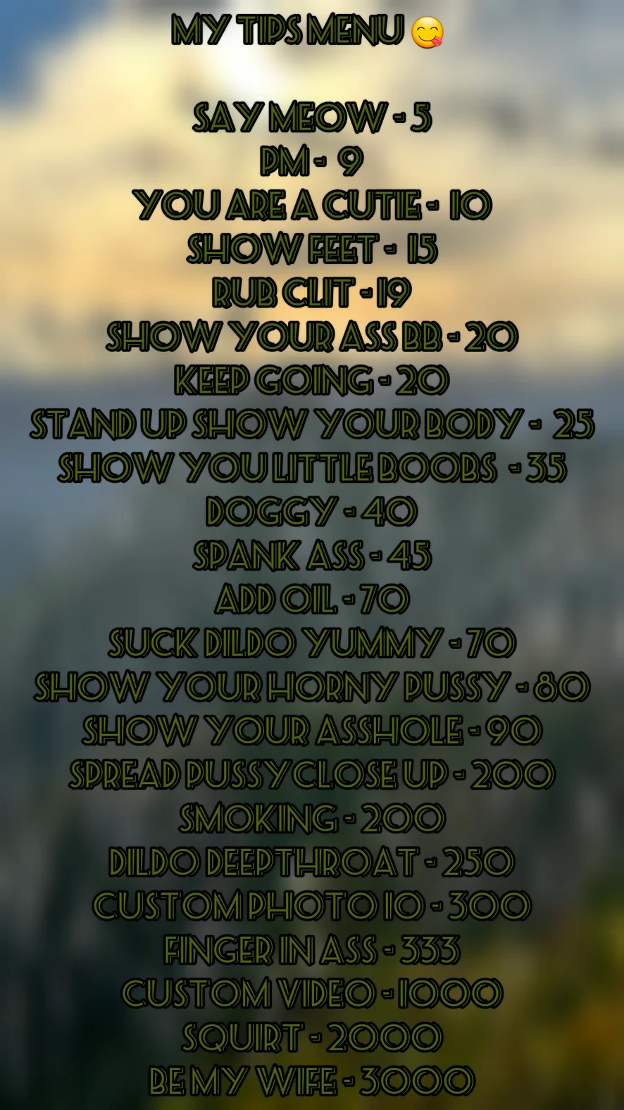Smoking, Twerk, Camel Toe, Swallow, Deepthroat, Dirty Talk, Double Penetration, Dildo or Vibrator, Shower, Hardcore, Striptease, Oil Show, Orgasm, anal plug+300, fuck ass+1000, Ahegao, Spanking, Doggy Style, Masturbation, Fingering, Blowjob, Topless, Handjob, Sex Toys, Upskirt